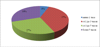 Около трети (37%) опрошенных слушает музыку от 1 до 3 часов, вторая треть (30%) слушает музыку более 5 часов, еще 27% слушает музыку от 3 до 5 часов. Всего 6% респондентов слушают музыку менее часа.В среднем, в течении дня слушают музыку 3,7 часов.