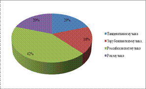 Любимым музыкальным направлением музыки для большинства опрошенных является российская поп-музыка ее выбрали 42% опрошенных, русский рок и танцевальная музыка увлекает по 20% опрошенных, зарубежная поп-музыка интересует 18% опрошенных.