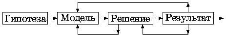 Общая последовательность познания заключается в, возможно циклическом, продвижении от гипотезы к модели (объекта, явления) и решению, результатом которого является знание. Модель общей последовательности познания представлена на рисунке 2.1.