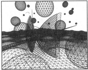 В начале 80-х гг. ХХ века стало возможным снимать кино на компьютере, заменяя компьютерными изображениями дорогостоящие модели. Впервые 30-секундный монохромный эпизод, созданный средствами компьютерной графики, был включен в знаменитый фильм Дж. Лукаса "Звездные войны: Эпизод IV" (Star Wars: Episode IV, 1977). На его создание ушло три месяца. В 1981 студия У. Диснея выпустила фильм "Трон" (Tron), бóльшая часть эпизодов которого представляла собой компьютерную анимацию, совмещенную с живыми актерами. Качество изображения оставляло желать лучшего (Рис. 2.3).