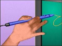 Световое перо (Рис. 3.8, в) когда-то являлось основным устройством координатного вода, но в последнее время фактически вышло из употребления – работа на вертикальной поверхности экрана неудобна по сравнению с работой с мышью или с планшетом.