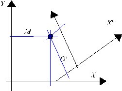 Методы выполнения аффинных преобразований хорошо известны из аналитической геометрии. Например, рассмотрим перенос (трансляцию) и поворот. Пусть на плоскости имеется двухмерная система координат XOY. В этой системе точка М имеет координаты х, у. Пусть на той же плоскости имеется еще одна система координат. Тогда в этой новой системе та же точка М будет иметь в общем случае иные координаты х', y'. Отметим, что одна система координат переводится в другую при перемещении ее центра вдоль отрезка, соединяющего начала координат обоих систем. Тогда переход от одной прямоугольной декартовой системы координат к другой описывается формулами: