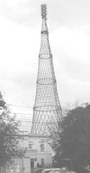 Аналитические поверхностишироко используются в технике. Например, отражатель фары или прожектора должен иметь точную форму параболоида вращения, а ряд ферменных конструкций состоят из гиперболоидов вращения. Гиперболоид удобен тем, что его можно получить соединением прямолинейных стержней. На основе гиперболоидов инженером В.Г. Шуховым в 1922г. была построена знаменитая башня на ул. Шаболовка в Москве (Рис. 6.6).