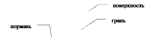 Оболочки состоят из набора граней. Каждая грань базируется на некоторой поверхности. Грань отличается от поверхности тем, что кроме поверхности, она несет информацию о связях с соседними гранями и об ориентации по отношению к внутреннему объему тела (Рис. 7.3). Одной своей стороной каждая оболочка обращена внутрь тела, а другой — наружу. Для того чтобы отличать сторону оболочки, направленную наружу тела, от стороны, направленной внутрь тела, каждой точке оболочки приписывается нормаль, которая считается направленной наружу тела.