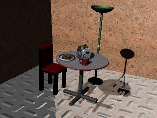 Метод Z-буфера хорошо пригоден для накладывания изображения трехмерной сцены на заранее подготовленный фон. Результат работы метода Z-буфера показан на Рис. 10.9.