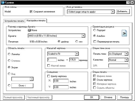 Ø Выбрать требуемое устройство вывода в раскрывающемся списке Name (Имя) панели Plotter Configuration (Конфигурация плоттера);