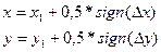 Координата другой зависит от расстояния между действующим положением отрезка и ближней координатой сетки.