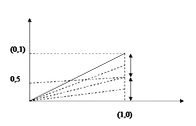 3) Если логическое И кодов обоих концов = 0 => этот подоз- ный отрезок может быть частично видим или целиком невидим т.е. на границе => определяются точки пересечения с окном.