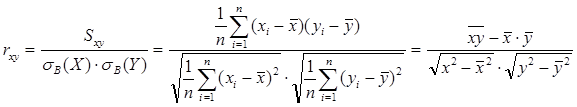 Как нами уже отмечалось ранее, наиболее употребляемыми характеристиками связи двух СВ является меры их линейной связи – ковариация и коэффициент корреляции. Их оценками являются: