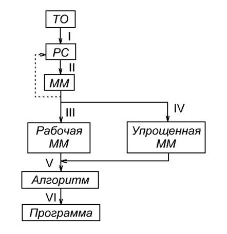 I Этап: Происходит переход от технического объекта (ТО) к рабочей схеме (РС), обычно на этом этапе делаются все допущения и выбирается предметная область исследования.