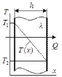Термическое сопротивление теплопроводности. Простейшим типовым элементом тепловой системы является плоская стенка толщиной h с теплопроводностью материала