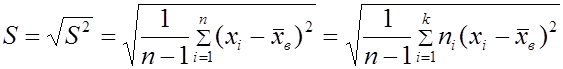 Аналогично вводится исправленное среднее квадратическое отклонение или так называемый эмпирический стандарт