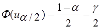 определяется по таблице значений функции Лапласа из равенства