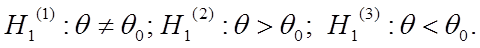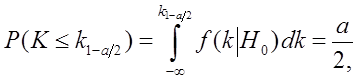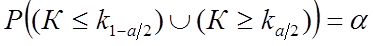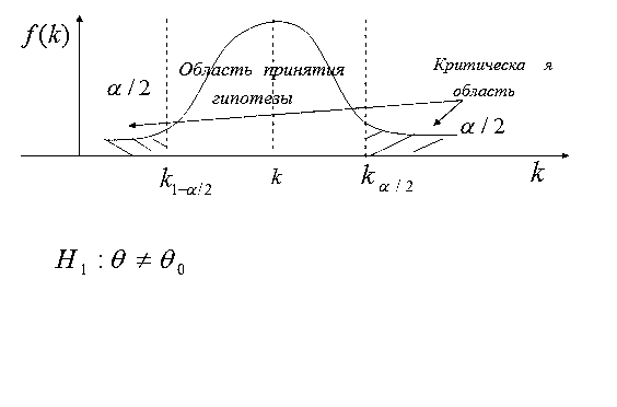 называется двусторонней критической областью. Она определяется в случае, когда альтернативная гипотеза имеет вид