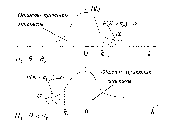 Кроме двусторонней, рассматривают также односторонние критические области – правостороннюю и левостороннюю.