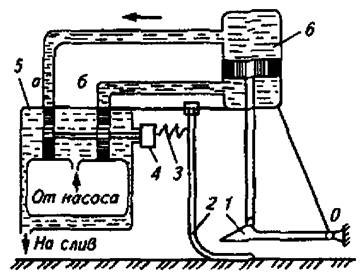 1 – гидрозолотник; 2 – поршень; 3 – контакты; 4 – копир; 5 – пружина; 6 – рычаг