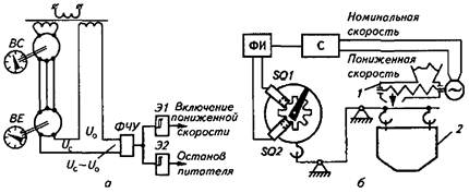 Цифровое управление (рисунок 12, б) обеспечивается преобразованием угла поворота стрелки в цифровой код. Датчики SQ1 и SQ2 автогенераторного типа с помощью зубчатого диска выдают последовательность импульсов, число которых соответствует углу поворота стрелки. Импульсы поступают сначала в формирователь ФИ, а затем в счетчик С. После отсчета п импульсов питатель 1 переводится на пониженную скорость, а после отсчета еще m импульсов — останавливается.