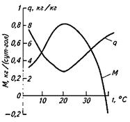 Рисунок 1 - Зависимость прироста массы М и удельного потребления
