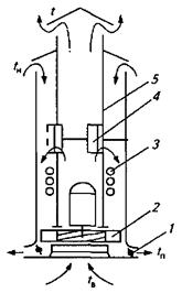 1 – жалюзи; 2, 3 - вентиляторы; 4 - форсунка; 5 - камера сгорания;