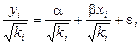, в которой остатки гетероскедастичны. Предполагая в них отсутствие автокорреляции остатков, можно перейти к уравнению с гомоскедастичными остатками, поделив все переменные на