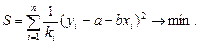 Оценка параметров нового уравнения осуществляется по взвешенному критерию следующего вида: