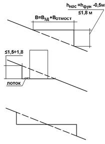 Ширина откосов на рис.17б обычно принимается до 6 м, и они используются для полосы озеленения. Откос полуторного заложения или переменной ширины.