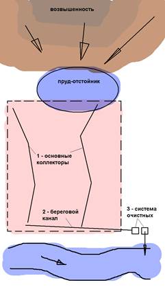 Элементы: защитная сеть, водосборная сеть (дождеприемники), водоотводящая сеть, специального назначения, сооружения на сети.