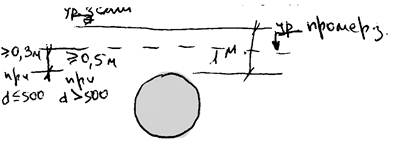 Диаметры коллекторов определяются расчетом: при длине меньше 40 м, микрорайон d=200, улица d=250-300. При диаметре до 600 мм без основания, при больших – бетонное основание. Материал коллекторов: асбестоцемент, керамика, бетон и пластик.