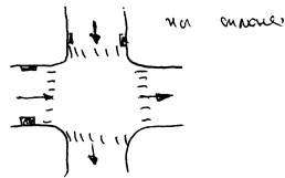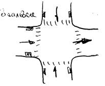 б) на перекрестах улиц со стороны приема воды до пешеходных переходов: