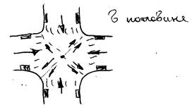 «-» низкая санитария, низкая эстетичность, низкая пропускная способность, требует постоянной очистки, необходимость увеличения ширины улицы и снижается безопасность транспорта и пешехода;
