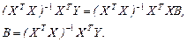 Для нахождения значений матрицы B (без учета вектора случайных ошибок) используют следующие преобразования выражения (2.6):