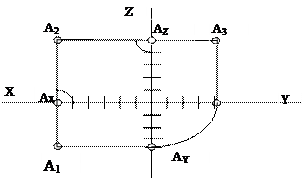 Наконец, возникает последний вопрос: на каком расстоянии от оси Oz должна находиться A3? Рассматривая координатный параллелепипед, ребра которого AZA3 = OAY = AXA1 = y, заключаем, что искомое расстояние AZA3 равно y. Отрезок AZA3 откладывают вправо от оси Oz, если y > 0, и влево, если y < 0.