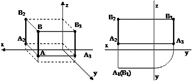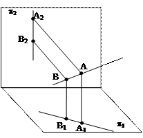 Прямые, перпендикулярные плоскости проекций, называются проецирующими. В точку обращается проекция прямой на ту плоскость, относительно которой прямая перпендикулярна. Например, для горизонтально проецирующей прямой получим: