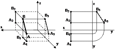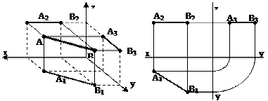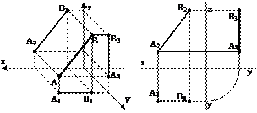 Прямой общего положения называется прямая, не параллельная ни одной из плоскостей проекций.