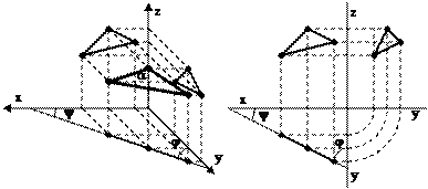Плоскость перпендикулярная p1 называется горизонтальной проецирующей плоскостью. Горизонтальная проекция такой плоскости вырождается в прямую. Углы y и j, которые образуются между плоскостью (a и p2) и (a и p3) соответственно, проецируются на p1 без искажения.