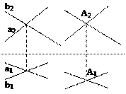 Линией пересечения двух плоскостей является прямая, для построения которой достаточно определить две точки, общие обеим плоскостям. Пред тем как рассмотреть построение линии пересечения двух плоскостей разберем вспомогательную задачу: найдем току пересечения прямой общего положения с проецирующей плоскостью