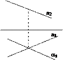 Дана прямая a и горизонтальная проецирующая плоскость a, тогда горизонтальная проекция K1 искомой точки должна одновременно лежать на горизонтальной проекции a1 плоскости a и на горизонтальной проекции a1 прямой a, т.е. в точке пересечения a1 с a1: K1=a1Ça1. Фронтальная проекция K2 точки K расположена на линии проекционной связи и на фронтальной проекции a2 прямой a. (На рисунке не приведена проекция a1, т.к. в данном случае она нас не интересует и может быть произвольной.)