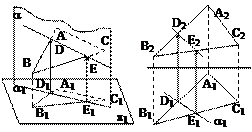 Найдем две общие точки для этих двух плоскостей. Очевидно, этими общими точками для DABC будут точки пересечения сторон AB и BC с проецирующей плоскостью a. Построение таких точек D и E как на пространственном чертеже, так и на эпюре базируется на предыдущем рассмотренном примере.