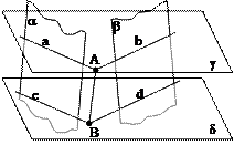 Плоскости параллельны, если две пересекающихся прямые одной плоскости, соответственно параллельны двум пересекающимся прямым другой плоскости.