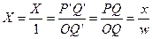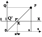 Для точек Q(0, w) и Q’(0, 1) имеем два подобных треугольника OPQ и OP’Q’, так что