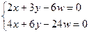 Уравнения из системы (3) можно интерпретировать как плоскости, проходящие через точку начала координат О. Эта система имеет по, крайне мере, одно тривиальное решение x=y=w=0.