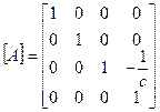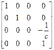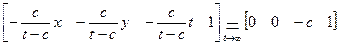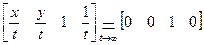 Т. е. бесконечно удаленный (несобственный) центр (0 0 1 0) пучка прямых, параллельных оси z, переходит в точку (0 0 -с 1) оси z.
