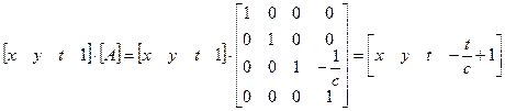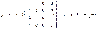 Эта точка называется точкой схода. В общем случае (когда оси координатной системы не параллельны плоскости экрана) таких точек три. Матрица соответствующего преобразования выглядит следующим образом: