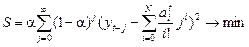 Согласно теореме Брауна [5], коэффициенты прогнозирующих полиномов линейно выражаются через экспоненциальные средние по результатам дисконтированного МНК, критерий оценки параметров которого выглядит следующим образом (в предположении, что значение ряда в момент времени