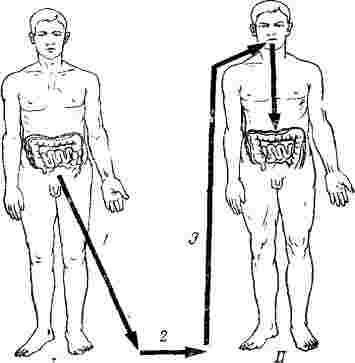 1 — зараженный организм; 11 — здоровый организм; 1 — выведение возбудителя; 2 — пребывание возбудителя во внешней среде; 3 — внедрение возбудителя в организм