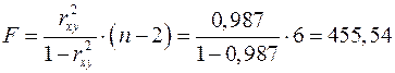-критерия Фишера (1.9) сравнивается с табличным значением