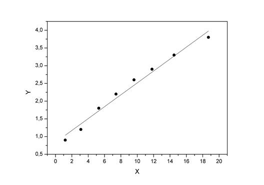 Теперь на одном графике изобразим исходные данные и линию регрессии: