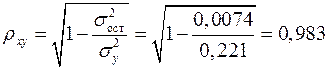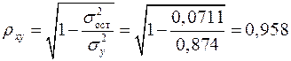Индекс корреляции находим по формуле (1.21):