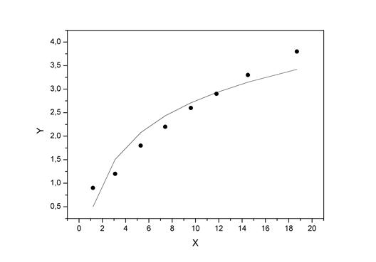 Наиболее хорошо исходные данные аппроксимирует модель с квадратным корнем. Но в данном случае, так как индексы детерминации линейной модели и модели с квадратным корнем отличаются всего на 0,004, то вполне можно обойтись более простой линейной функцией.