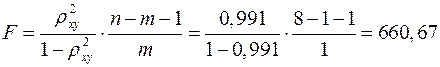 , который показывает, что 99,1% вариации результативного признака объясняется вариацией признака-фактора, а 0,9% приходится на долю прочих факторов.
